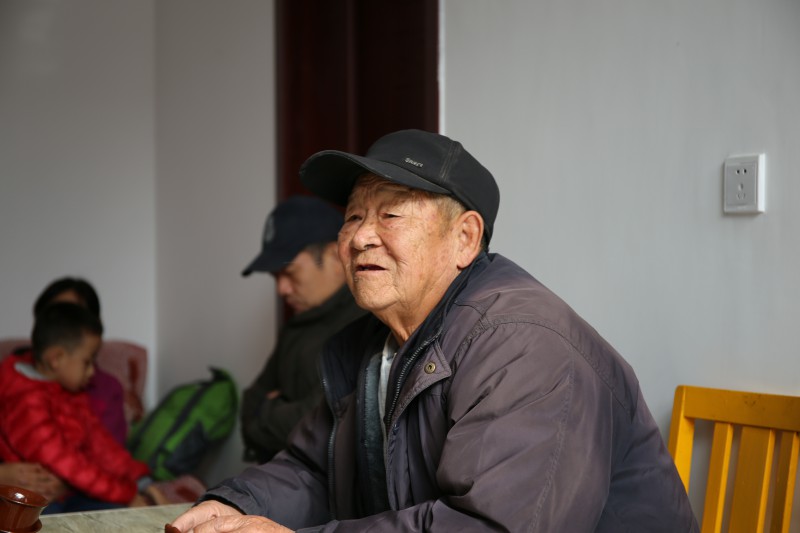 在地道遗址的参观结束后,团队一行人来到当地农家大院上了一堂特殊的“党课”。抗战时期焦庄户儿童团委员,现已年过八旬的焦志斌老人给大家讲述了焦庄户村的抗战历史。在老人的讲述中,我们了解了抗战时期焦庄户村共产党员的艰难建设、日本侵略者的残暴罪行、中国共产党领导人民群众与日本侵略者的正邪较量。他多次提到了当时的村支部书记马福,正是在他的带领下,焦庄户的革命与建设才开展得有声有色。焦志斌老人精神矍铄,幽默的语言中透露着共产党人的坚毅和果敢。老人最后语重心长地说:“希望大家铭记历史,继承和发扬革命先辈的优良传统,坚定理想信念;好好学习,天天向上,报效祖国,服务人民!”对于老人的教诲与嘱托,全体师生报以长久而热烈的掌声。