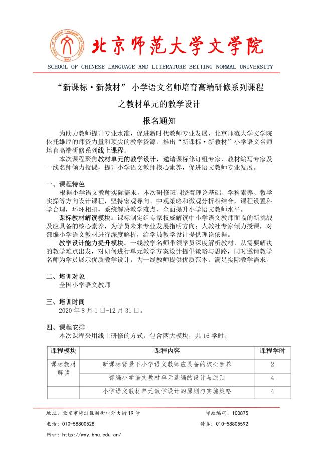 小学语文名师培育高端研修系列课程之教材单元的教学设计专题课程报名通知
