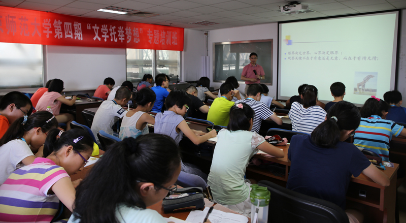 的光辉历史,历数师大历代文学大师,鼓励小作家们努力学习,向先贤看齐,并寄予了殷切的希望,希望他们能够充分利用5天的培训时间,虚心求教、努力学习、学有所成,争取未来成为一名杰出的乃至世界级的优秀作家。
