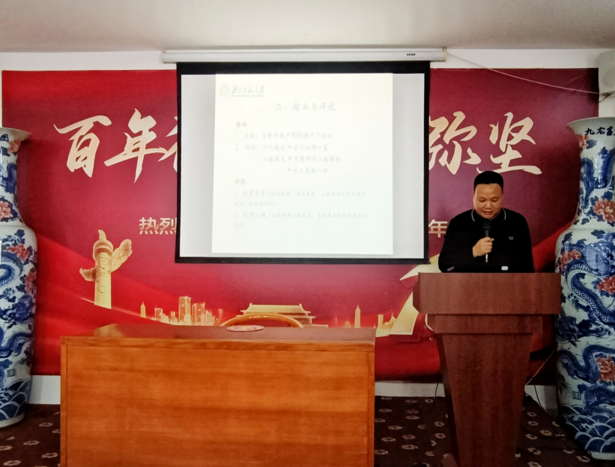 一直注重社会服务,参与《中国诗词大会》《跟着书本去旅行》等文化节目的策划,并深耕基础教育领域,多年承担国省培项目以及北京市教委支援合作与对口协作项目,勇于承担社会责任。最后,张老师介绍了此次培训的课程安排以及结业和评优要求。本次课程设计充分考虑了学员需求,采用小组研讨、观摩交流、专题研修等形式,涵盖教育、心理等多方面内容,希望老师们度过一段快乐充实的研修时光。
