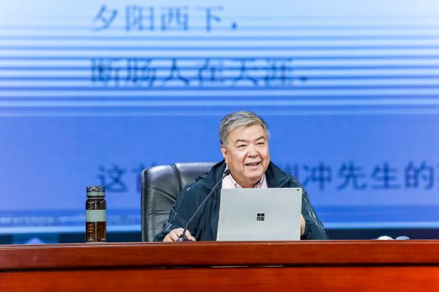 李山教授为大家带来了题为“古诗词的意蕴”的精彩讲座。李山教授旁征博引,以《天净沙·秋思》《醉翁亭记》等诸多著名诗篇举例,并引用英语翻译、外国诗歌等相关文学作品比较分析,指出古诗词是建构在汉语上的艺术,欣赏诗词应该有文化基础。只有广泛的阅读,才能真正读懂诗词。李山老师幽默风趣的讲解使得晦涩深奥的学术知识变得通俗易懂、生趣盎然。