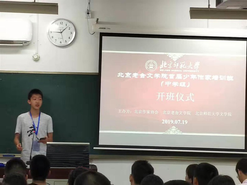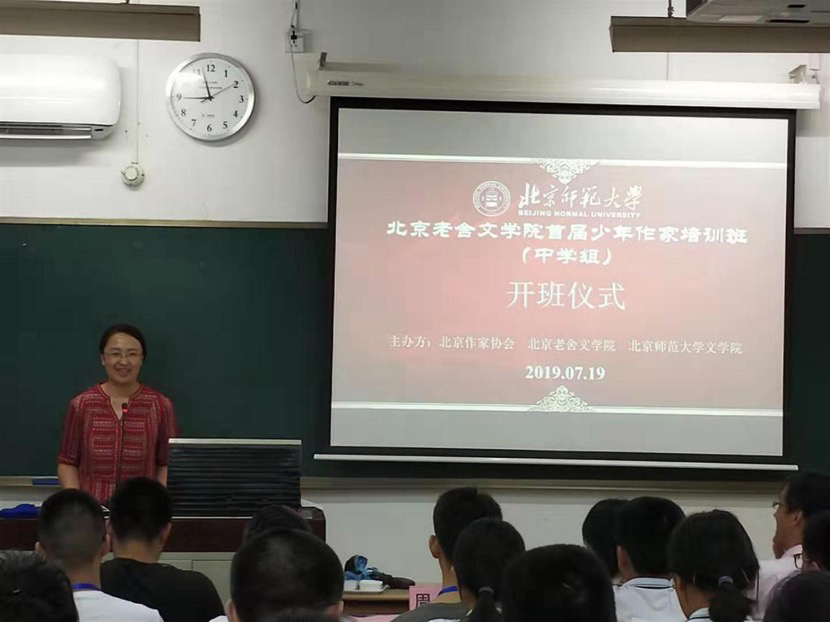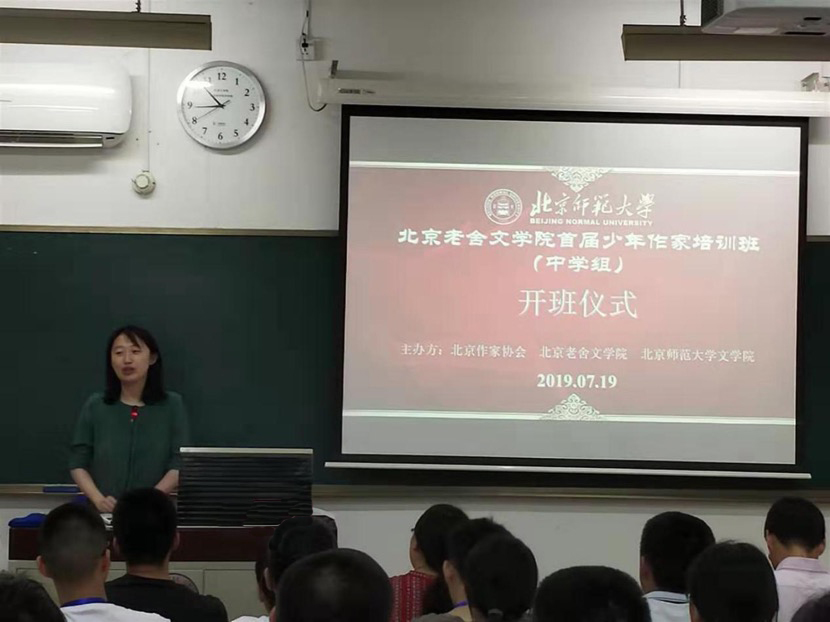 北京小作家协会秘书长周敏老师也对同学们的到来表示了热烈的欢迎,她提到了此次来参加培训班的同学们主要由小作家协会会员与团体会员校推荐学生构成,并叮嘱同学们要多结交不同学校的同学,强调只有丰富的生活才能写出厚重的作品。其次,周敏老师还介绍了北京老舍魔镜街拍