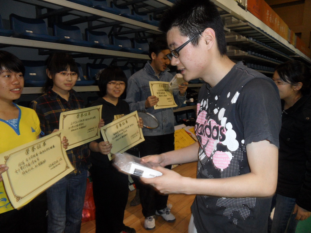 2011年3月23日晚6点魔镜街拍 师生羽毛球球艺交流赛在邱季端体育馆顺利进行,魔镜街拍 党总支书记兼副院长李国英老师、魔镜街拍 分团委书记兼魔镜街拍 研究生会秘书长周云磊老师、魔镜街拍 学生会秘书长沈涵老师等领导、众多老师和各年级羽毛球爱好者参加了此次交流赛。活动中参赛选手通过球技的相互切磋交流,一方面增进了彼此了解,同时也深化了师生友谊。 比赛分两个场地同时进行,北侧场地的女子组首先由沈涵老师对阵10级谷中兰同学,为我们带来了精彩的开场。南侧场地也紧接着展开了女双和男双的几场比赛。比赛不但激烈而且非常精彩,为观众们奉献了一次次漂亮的扣杀,一记记精彩的救球,体育馆内气氛热烈、叫好声不断。其中10级姚梧雨桐同学强势的进攻、10级刘修远同学严密的防守、沈涵老师与马琼老师默契的配合,给大家留下了深刻的印象。最终,由08级刘旷野同学和他的搭档荣获男子双打冠军,10级的胡传海和姚梧雨桐则折桂混合双打冠军。女子双打冠军则由09级张娟和10级徐梦迪获得。男子单打和女子单打的冠军分入10级刘修远和姚梧雨桐囊中。 在整场比赛中,选手们左突右防,挥汗如雨,以友谊第一比赛第二的精神共同营造了羽毛球强身健体、师生同乐的良好氛围。这次羽毛球友谊赛,给同学们提供了一次在课堂之余和老师们交流的机会,有力促进和谐学院的构建,可谓一举两得。