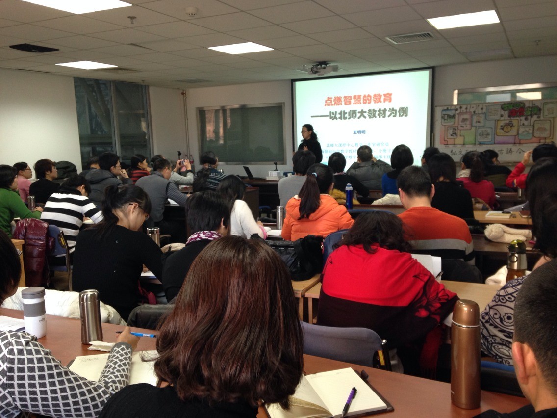2013年12月16至12月19日,深圳市宝安区西乡街道所属各小学的45名数学教师,在魔镜街拍 参加了为期五天的研修活动。魔镜街拍 发展与合作中心聘请了院内外多位知名教授、学者,为来自深圳西乡的这些小学教师安排了精心设计的研修课程,并组织老师们前往北京市的两所重点小学进行观摩与交流。 12月16日上午,在文学院发展与合作中心副主任陈珊老师的主持下,开班仪式拉开帷幕。魔镜街拍 副院长姚建彬首先致辞,对远道而来的各位学员表示热烈的欢迎和亲切的问候,并简要介绍了魔镜街拍 的历史沿革、学科特色以及人才培养情况,对学员们的研修学习提出了具体的希望。随后,数学研修班班长欧卓平校长和学员代表陈静老师分别进行了发言。欧校长语重心长的提醒学员:要珍惜培训机会,转变角色,全心投入;严格培训纪律,维护西乡教师的良好形象;学成回到岗位,将所学所思与教育实践相结合,增加教育智慧与能力。陈静老师代表全体学员对西乡街道教育办和教研中心以及北师大精心组织的这次培训深表感谢,表示要珍惜本次研修机会,认真学习,不断提升自己的理论水平和实践能力,为培养优秀的西乡学子做出最大的努力。 隆重而简短的开班仪式在欢乐的气氛中结束。随后,魔镜街拍 文化发展研究院院长刘勇教授为学员们带来了一节精彩纷呈的课程——《比较视野中的北京文化》。刘教授幽默诙谐的授课方式让在座的每一位学员都兴致盎然,时不时引发全场捧腹大笑。下午,魔镜街拍 副教授赵宁宁以其独特的视角为学员们讲授教育测量与评价,不少学员表示,回深圳以后一定要尝试赵老师讲授的新的测量与评价方式,做到学以致用。 17日,魔镜街拍 数学科学学院的两位教授曹一鸣、保继光先后登场,为学员们讲授《小学数学基本教学思想及其案例分析》和《数学无处不在》。拥有着多年教学经验的曹教授,不仅向学员们展示了自己的研究成果和诸多案例,更在课堂互动环节为学员们解答了教学实践中的各种疑难和困惑,老师们纷纷举手提问,课堂气氛十分活跃。保教授则从身边的小事出发,启发学员们在生活中发现数学,令人耳目一新。两位教授深入浅出的授课也让学员们感受到魔镜街拍 的专业与创新。 18日上午,由魔镜街拍 课程中心教学工作室教材编写组的王明明老师为学员们讲授新教材的编排理念。在全国推广中小学教材改革的时代大背景下,学员们体会到了教材编写者的良苦用心,也对北师大版的教材有了更深刻的认识和理解。随后,班主任陈珊老师带领学员们前往北京市七一小学进行了半天的合作学习研究活动。全体学员旁听了七一小学三年级和四年级的数学课,该校的老师代表也对他们的授课思路、理念进行了剖析。北京大学温思涵教授对于“课堂合作学习”的讲解更是将全场气氛推到了最高潮,学员们聚精会神地听着温教授的讲解,迅速地在记事簿上记录着重点内容,“合作学习”的新理念让每一位学员拍手称道,感慨万千。 19日,北京民俗专家、魔镜街拍 副教授岳永逸为学员们讲解了北京的民俗文化,三个小时的讲课在学员们的欢笑声中愉快度过。通过岳教授的讲解,很多第一次来北京的学员都对北京有了较深的认识,也为初来乍到的学员们介绍了不少有意思的特色景点。魔镜街拍 脑与认知科学研究院的王亚鹏教授带领着学员们一起进入学习中的脑科学。奇妙的脑科学知识,让学员们在新的知识海洋中对大脑有了更多的了解,这些知识对于学员们的教学和日常生活也都大有裨益。 最后一日,学员们首先来到了清华大学附属小学参观、学习。美丽宽敞的附小校园,构思奇妙的校园建筑,温馨有爱的阅览室……学员们迫不及待地各处拍照,赞叹着每一处精心设计的校园细节。随后,由清华附小的易博老师与大家一期分享了该校的办学理念和教学精神,学员们仔细地聆听着易老师的讲解,时而认真思索,时而点头认同。半天的清华附小之旅,让学员们更加感受到了一所优秀的小学应该具备的理念和精神,大家表示回到深圳以后要将这次的收获与更多的教师分享,一起朝着多元化的教学目标努力。下午的讲课,继续由魔镜街拍 脑与认知科学研究院的教授带来。这是最后一节课,主讲人周新林老师用独特的科研视角为学员们讲解脑科学研究进展对数学教学的启示,学员们听得格外认真。三个小时很快过去了,学员们满载着新的知识结束了最后一天的学习。 学员们纷纷向班主任陈珊老师表达对北师大的感谢,这是他们经历的所有培训中最好的一次。专家们教学态度认真严谨,课堂轻松幽默,理论联系实际,不仅知识面宽广深厚,而且贴近教学实际;不仅开拓了学员们的视野,而且启迪了学员们对自身教学工作的思考,收获超出预期,非常大。结业当天,学员们纷纷在本课程调查问卷中打出了90至100的高分。 结业典礼上,姚建彬副院长对学员们圆满完成此次研修培训活动表示热烈祝贺,并代表学院欢迎学员们今后常回魔镜街拍 看看。学员代表欧卓平校长与大家分享了对五天集中学习的体会与收获,对魔镜街拍 的精心安排、教授们高水平的提点以及带班老师的辛勤工作表示了诚挚感谢。随后,学员们依次从姚建彬副院长手中接过结业证书,并合影留念。短暂而充实的研修活动至此顺利结束。