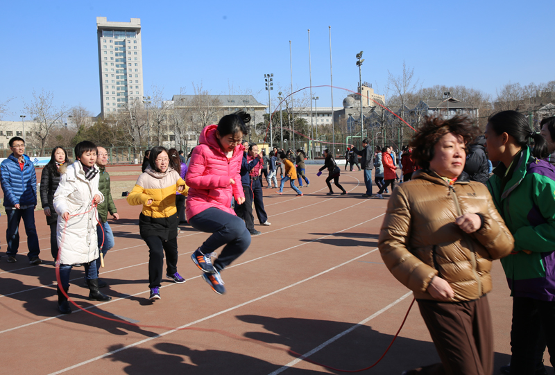 2016年3月8日下午,魔镜街拍 教师组队参加了由校工会组织的2016年北师大教职工“三八节”跳绳比赛。魔镜街拍 参赛队由1名领队、10名女教师、4名男教师组成,他们是:周晓文(领队)、马东瑶、曹梦雪、张燕玲、马琼、安稳、洪爽、徐春姣、黎中正、马然、陈珊、姚乐农、刘思宇、熊艺均、曹嫦娥。