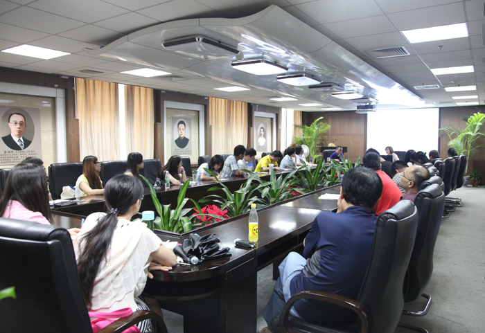 洪安瑞教授与在座研究生探讨了当今文学生态转向的几个关键词:生态、环保、后人民性等,她从众人耳熟能详的“雾霾”、“黄浦江死猪”等事件中的媒体与文学反馈入手,认为在日益严重的生态问题前,文学解构了固有的文学认知和文学文本,让人们直面问题而进行反思。洪安瑞教授列举了中国国内大量的环境恶化图片,认为被破坏的山水在人的个性里面也会生效,使人性中出现“恶”的东西,但与之相反,若人和自然能够融合,人的精神也将得到纯化和完美。因此,当代文学在今天不仅仅是探讨人内心问题,更应该对于客观的生态加以讨论,而文学从古至今有着这样的传统。方维规教授和洪安瑞教授对于部分词语的中文释义加以探讨,并详细阐释了“实物政治”这一说法,认为物的本身存在即存在其政治性。