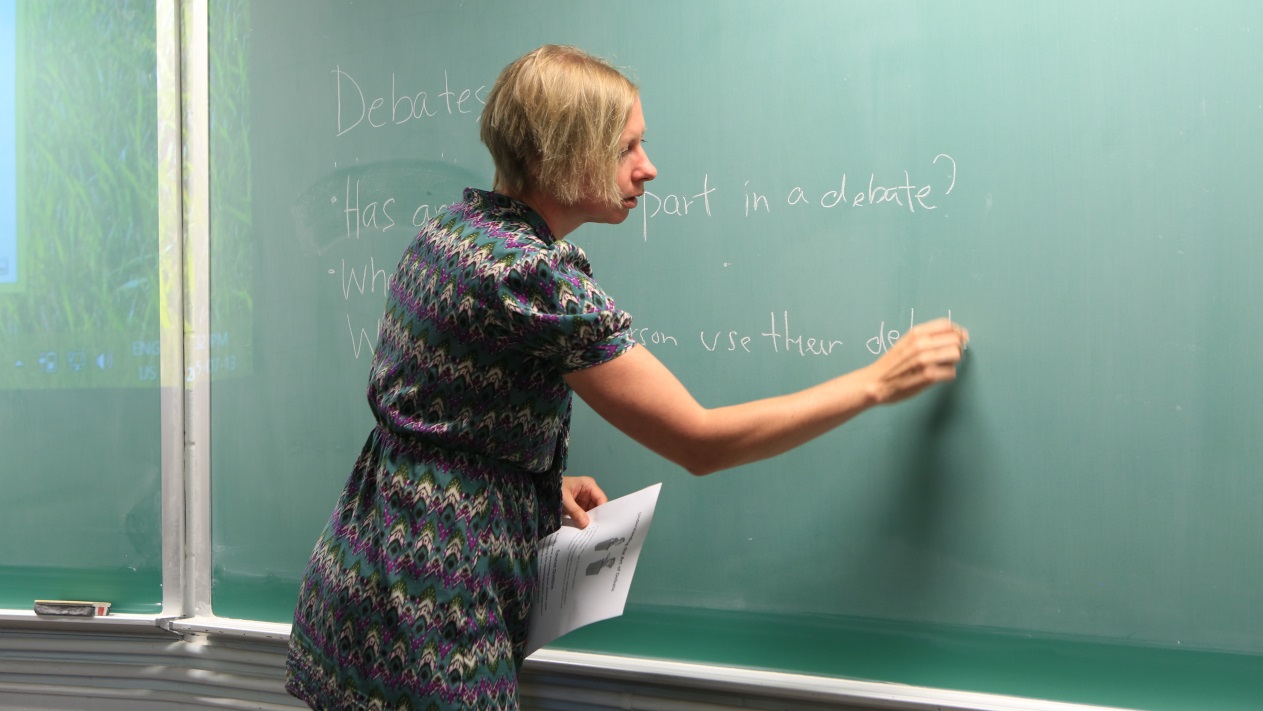 每天下午安排的是学术英语课(EAP),课程内容包括辩论技巧、演讲技巧、英文原著精读等。学生们被分为两个班进行教学,课上,老师从听、说、读、写四大部分对学生们进行高强度训练,大大提高了学生们的口语交际能力和英语应用能力。