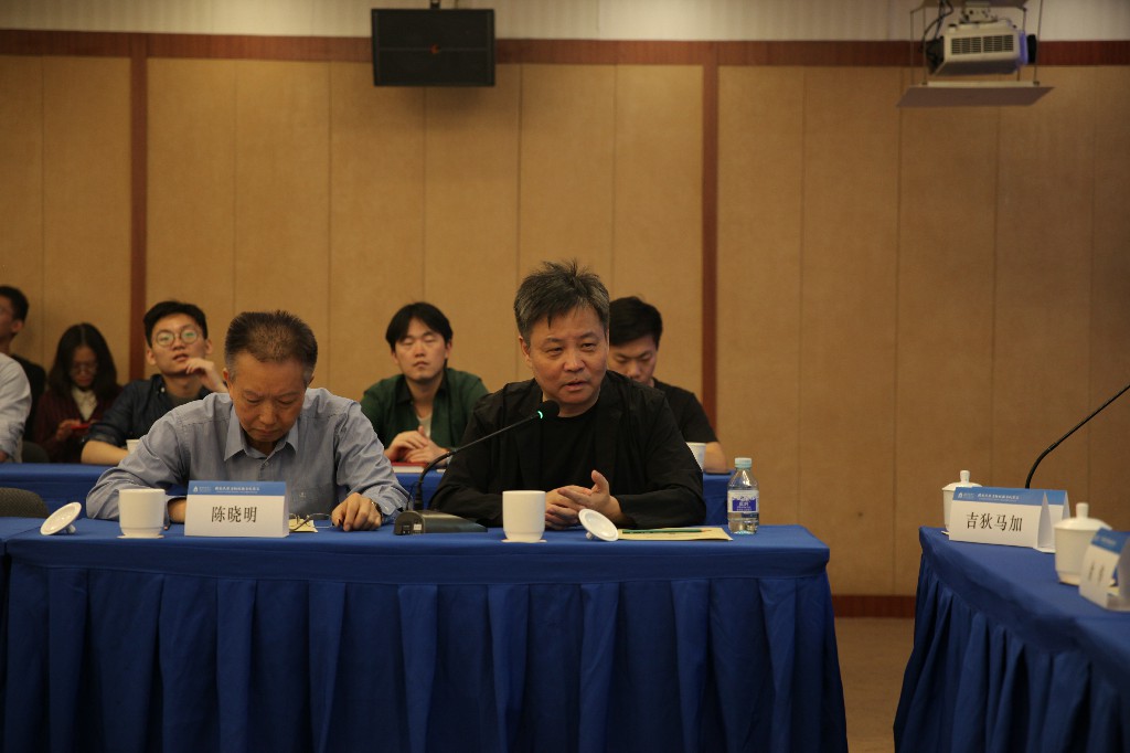 北京大学中文系主任陈晓明教授发言。他指出,阿来是一个富有历史感与文化蕴含的作家、是一个对语言有深刻理解的作家,一个博学、有个人风格、有非常实在生活的作家。他表示,今天中国很多作家都是高峰,但我们没有能力看到他们,这是理论和思想观念的问题。在这个意义上,中国今天的很多作家确实需要评论家有更丰富的思想、更复杂的方法去释放出他们充沛的内涵。