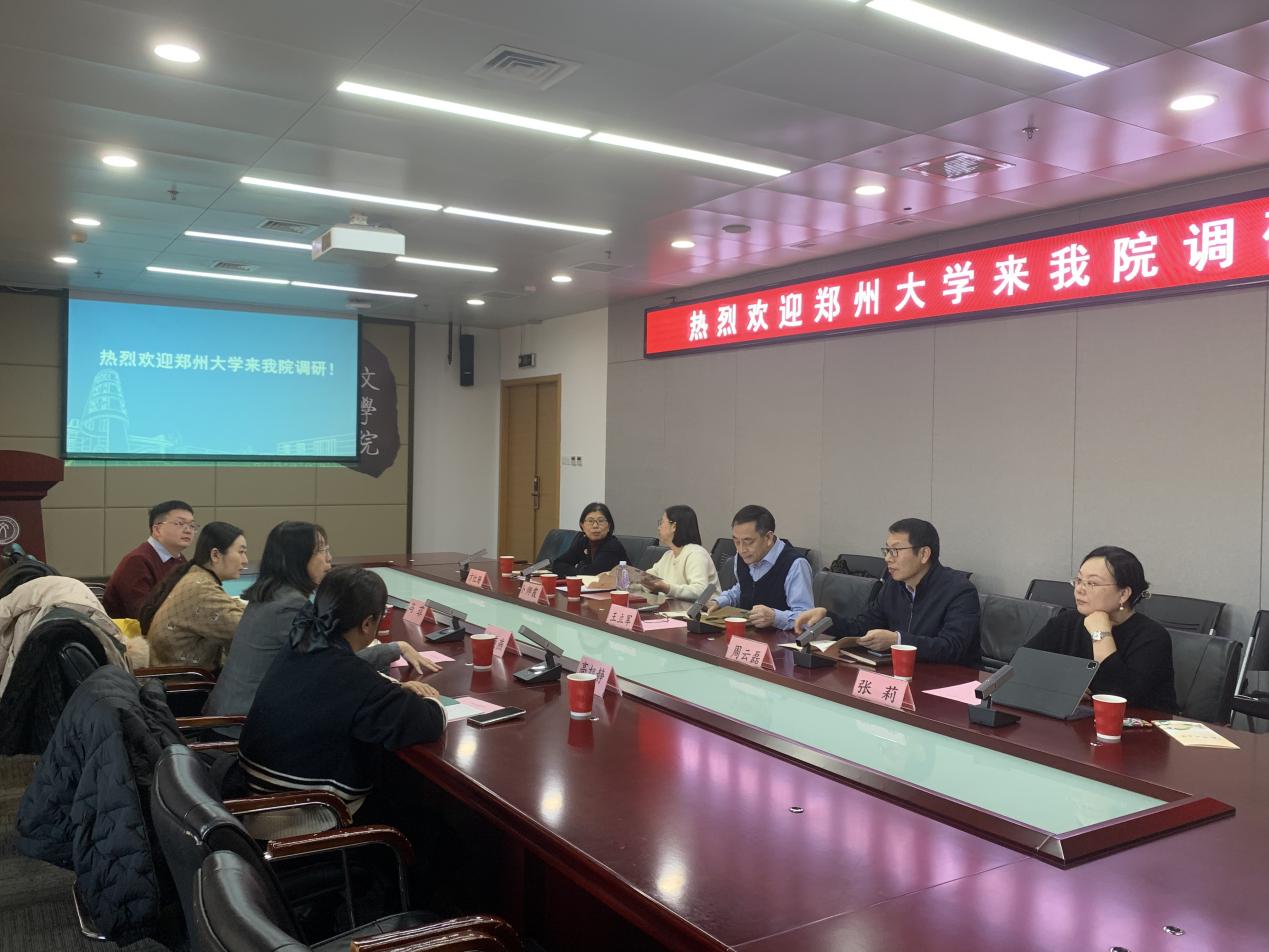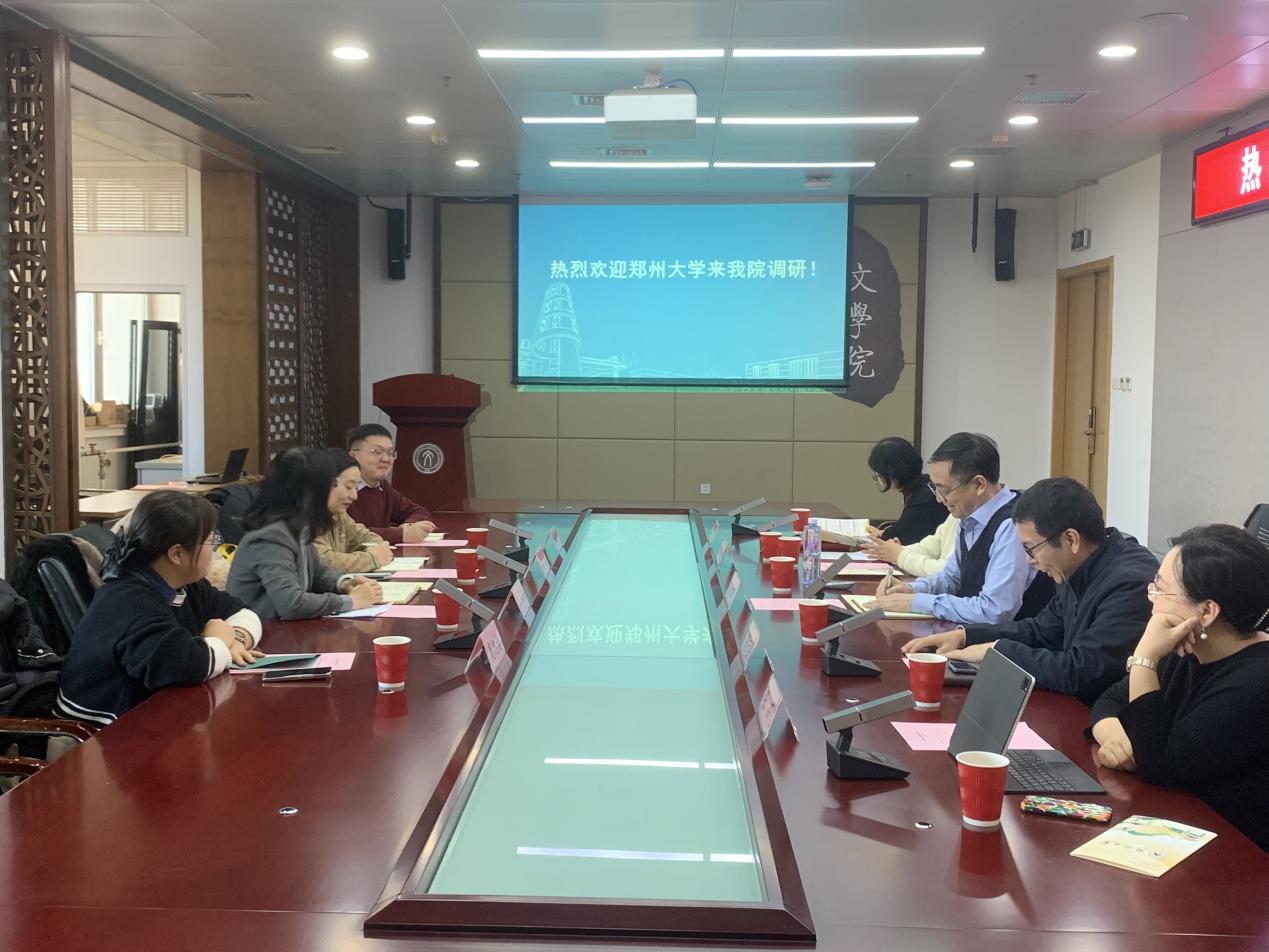 王立军院长代表学院对郑州大学的来访表示热烈欢迎。双方就文科学科建设发展、人才引进梯队培养、科研团队组建、科研项目管理以及科研成果的转化运用等方面进行了深入交流。