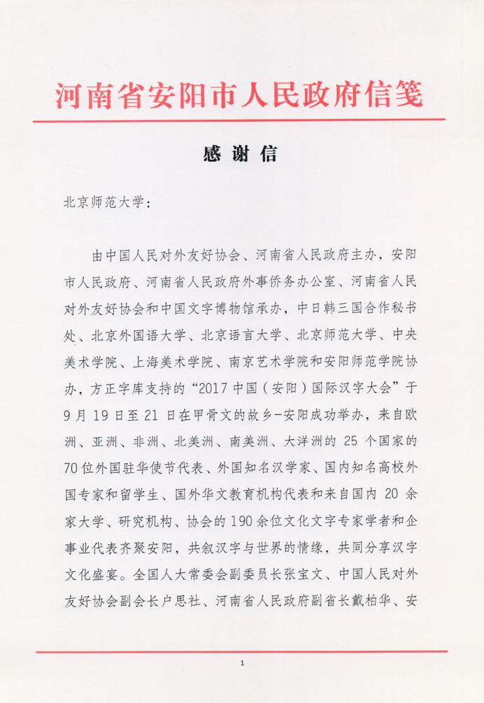 汉字研究与现代应用实验室牵头主办的《时间的记忆:汉字的发展历程》主题论坛,认为该论坛对大会的成功举办起到了重要的支撑作用,并期望能够在我校的持续支持、指导和协助下,中国(安阳)国际汉字大会能够纳入国家机制性项目,成为国内首个高层次、综合性、富有国际影响力的汉字文化传播、文化对话及文明互鉴的多边交流盛会和共享平台,成为国家中华文化走出去的重要国际性品牌。