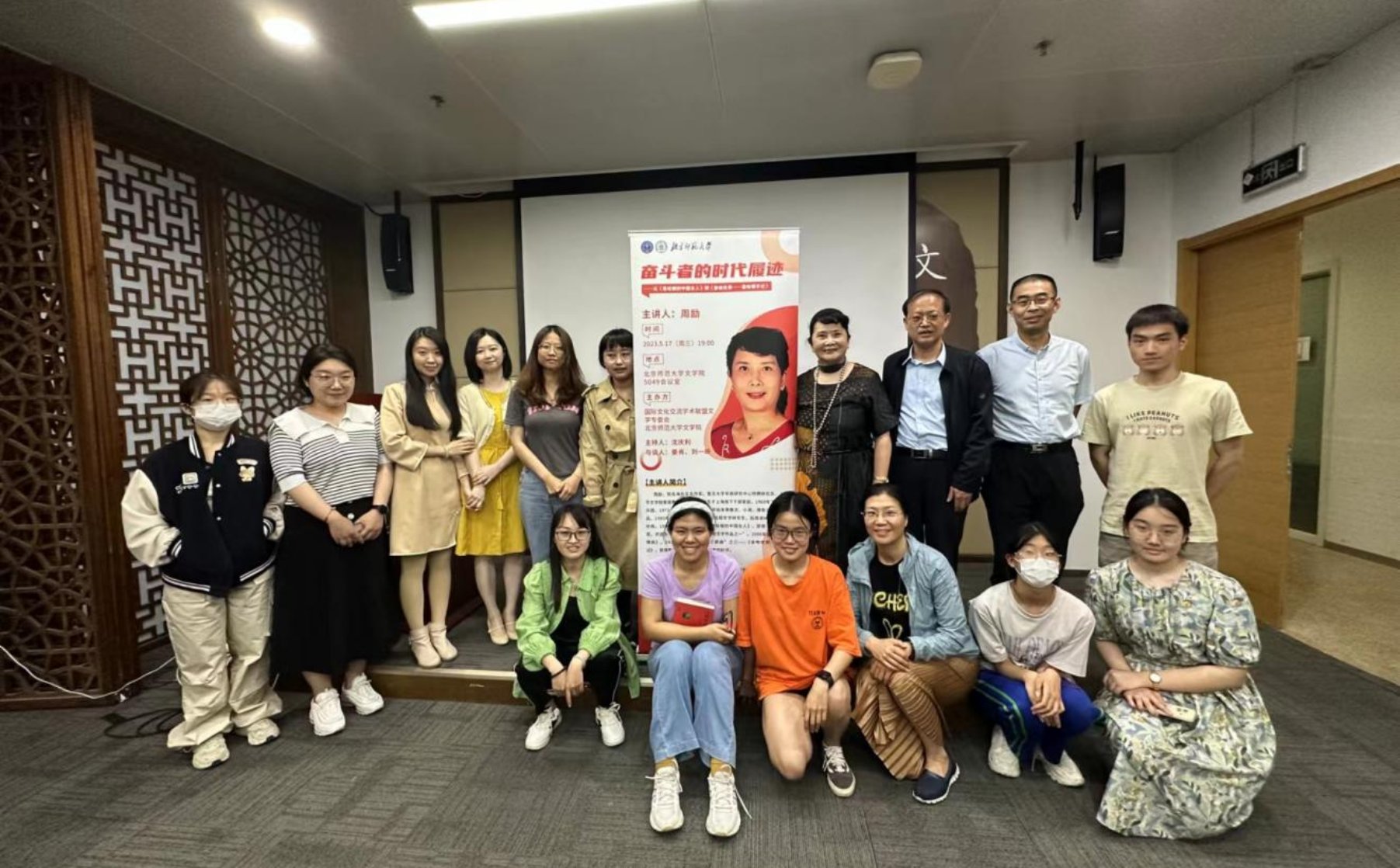 周励的生平分享非常生动、深刻,引起了在场老师、同学们的强烈共鸣和热烈讨论。沈庆利教授对周励分享中展现的强大精神力量进行了精炼概括:拒绝安逸的生活,创造奇迹;大胆尝试,富有冒险精神;敢于吃苦;在实践中学习,善于把握机遇;具备反常规思维;成功是时代与个人奋斗共同作用的结果;个体要努力在改变自身命运的同时为社会做贡献。周励老师既面向广大的世界,又心怀强大的个人意志,她身上所体现出的生命活力、困境中的顽强意志和勇于挑战自我的品格令人无比感动与钦佩,在场同学也应该以周励老师为榜样,不断奋斗、突破自我,为沟通中国与世界文化贡献自己的力量。与谈人姜肖老师、刘一昕老师也对周励老师的作品发表了自己的见解。姜肖老师以历史记忆、文化符号、女性传奇三个关键词为切入点解读《曼哈顿的中国女人》,指出该书呈现出一种现代人的言说、流动和敞开;刘一昕老师从个体生命经验出发讲述自己的阅读体验,阐释《曼哈顿的中国女人》中积淀的审美意识、从《曼哈顿的中国女人》到《亲吻世界》中作者个体位置与生命视野的拓展。在场同学积极提问,周励老师耐心细致地解答,从女性身份与情感记忆、未来的写作计划等方面与师生进一步交流。