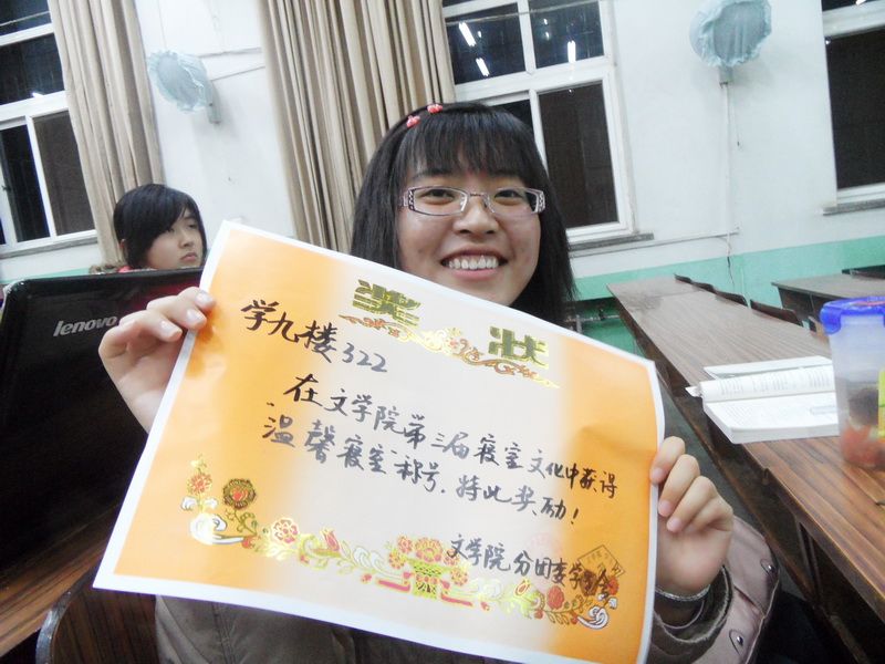 权益部部长王振波宣布获奖方阵并为获奖方阵颁发了奖品。最后,本次寝室文化节在一片欢声笑语中落下了帷幕。这不仅仅是一次寝室文化的评比活动,更是一次让同学们互相了解、互相认识,提高独立意识,感受魔镜街拍