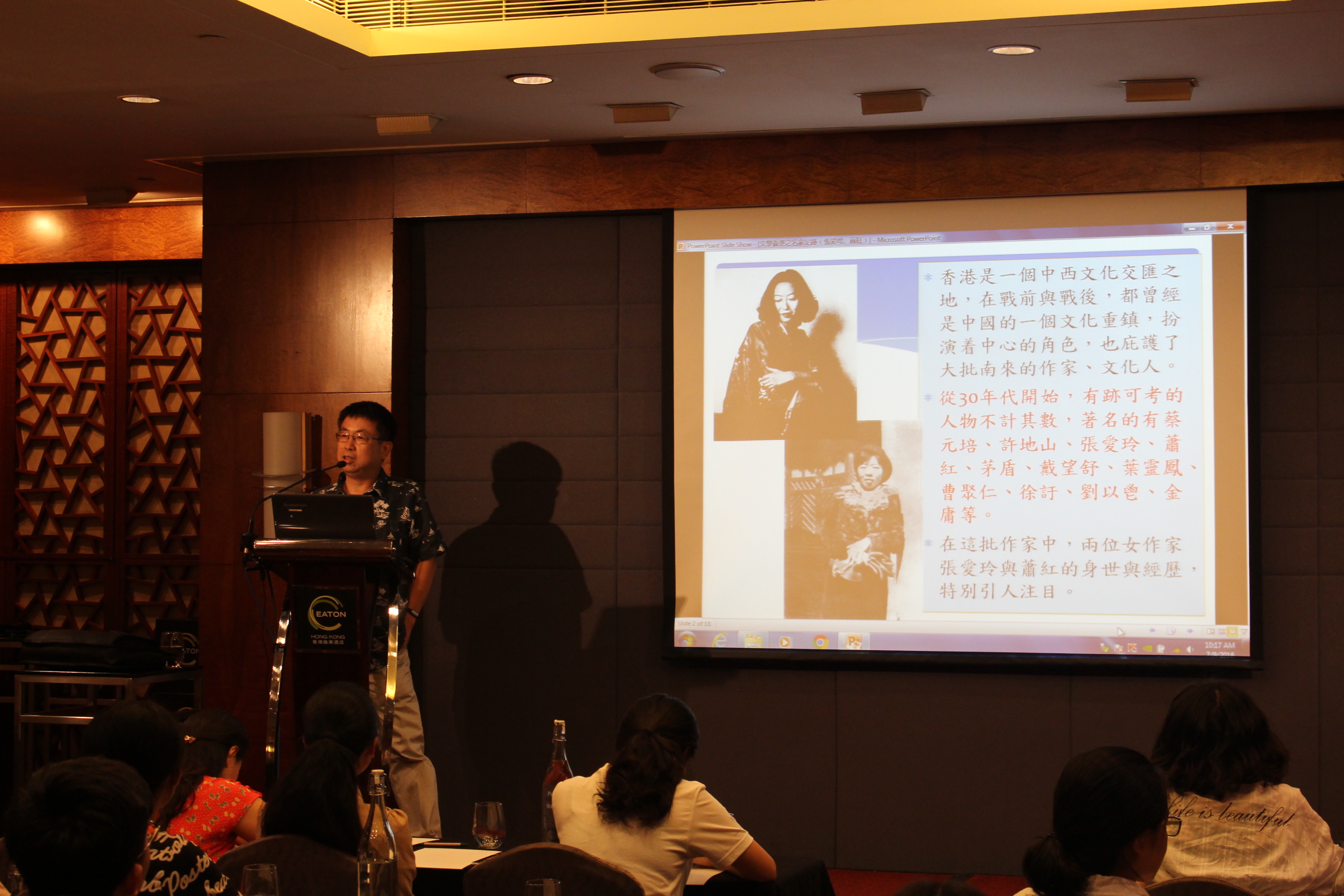 人们常说香港是一片文化沙漠,然而蔡老师说,香港是文化绿洲。作为中国的一个战前战后的庇护中心,香港成为了中西文化的交汇之地,在战争期间庇护了大批南下的知名文人,著名作家张爱玲与萧红是其中的典型代表。