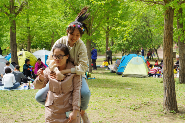 上午10点,同学们在奥森公园南门集合,开启了徒步踏青之旅。虽然师大校园的绿化也是极好的,但大多数时候同学们都被“困”在教室、宿舍里,很少有机会能亲近自然,虽然春光就在眼前,却不能尽享。但在这次活动中,同学们走出高楼,与春日的微风暖阳、花草树木“零距离接触”,在徒步的过程中感受到鸟语花香、湖光山色。钱锺书先生在《窗》中写道:“若据赏春一事来看,我们不妨这样说:有了门,我们可以出去;有了窗,我们可以不必出去。”但是,窗外的春天总是隔着一层窗户,只有走进春天,春天才是可以看到、嗅到、触碰到、感受到的。