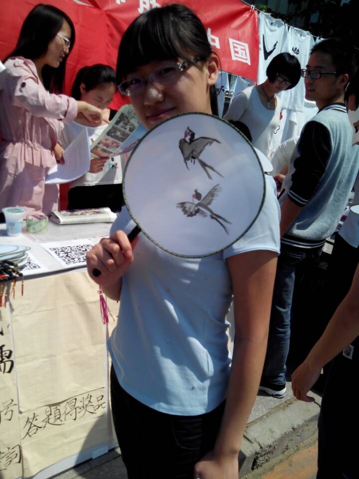 分团委微信订阅号之后即可参与活动,回复关键词将获得关于社会主义核心价值观等问题,答对两道题目者即可获得扇面或脸谱的奖品。同学们在扇面上书写自己老师对自己影响最深或给自己留下深刻印象的一句话。一位同学在自己获得扇面上写下了“学为人师,行为世范”八个大字,“我觉得这两句话可以激励我,让我时时刻刻不忘对自己的行为负责,我也觉得这是为人师的行为准则”,这位同学这样说道。同学们在脸谱上描绘出丰富多样的图案,感受古典脸谱文化,展现出青年的创意与激情。