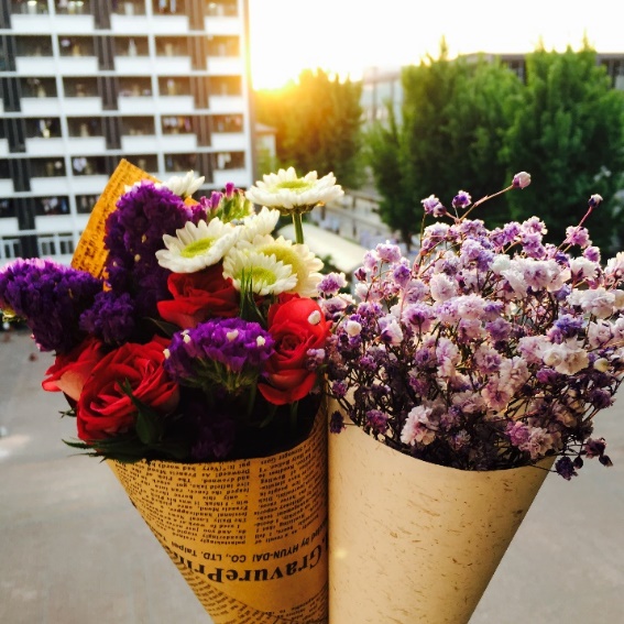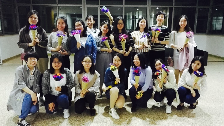 很快各位心灵手巧的仙女们就做好了一束束鲜花,抱着自己美美的作品,拍了一个美美的合照。