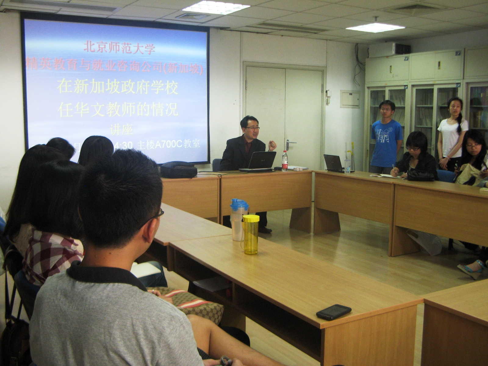本次宣讲会主要是由向同学们介绍在新加坡政府学校任华文老师的工作生活情况,并现场提供招聘机会。