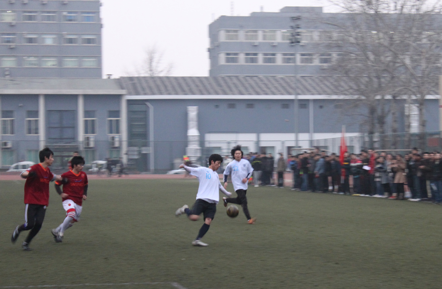 17:15分,管理学院开球,比赛就此拉开序幕。比赛双方在场上展开了激烈的争夺。上半场前段魔镜街拍