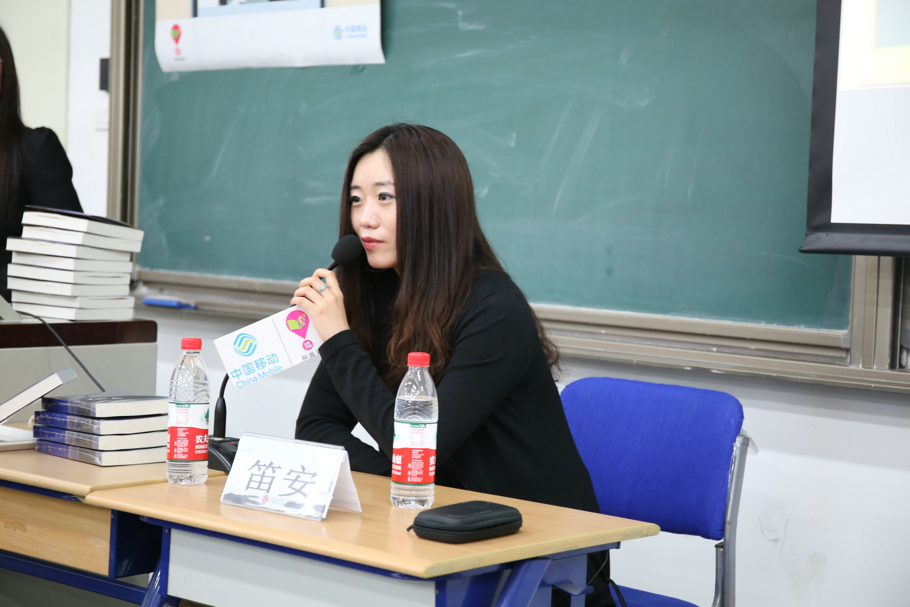 学生会、鹭江出版社主办的第八届北京市大学生读书文化节、金声玉振读书文化系列论坛之“虚构世界与生活本真——笛安专场”在北师大教四楼107教室举行。著名作家、《文艺风赏》杂志主编笛安与观众分享了自己创作背后的故事和感悟,全场气氛热烈。