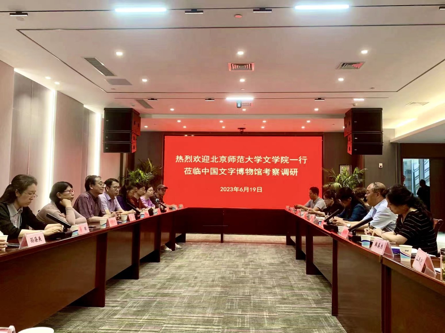 院长王立军强调中国文字博物馆的知识性与品牌力,对博物馆取得的重要成就予以高度评价。党委书记周云磊向与会领导介绍北师大中文学科,特别是近些年来围绕语言文字开展的社会服务工作,期待未来两家单位能够继续合作,为推动国家重大发展战略作出更大的贡献。双方表示,后续将坚持资源共享、加强合作,共同致力于语言文字的推广和普及,更好地传承弘扬中华优秀传统文化,为坚定文化自信、推动文化繁荣、建设文化强国、建设中华民族现代文明作出贡献。