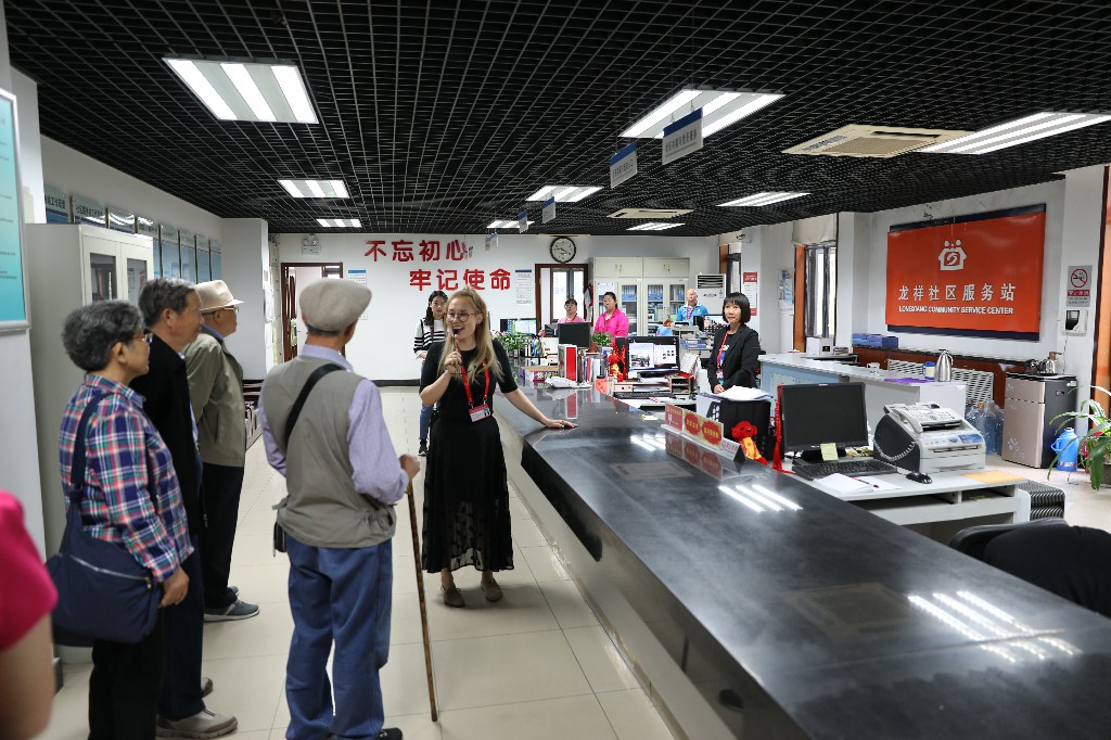 上午9点,学院一行人到达奥运村街道龙翔社区,社区党委书记白文平代表社区“两委一站”热情接待了学习团,并向老师们简要介绍了龙翔社区的情况。社区工作者热情细致的工作态度、“一站式”社区服务平台,“幸福家”品牌系列活动给大家留下深刻印象。