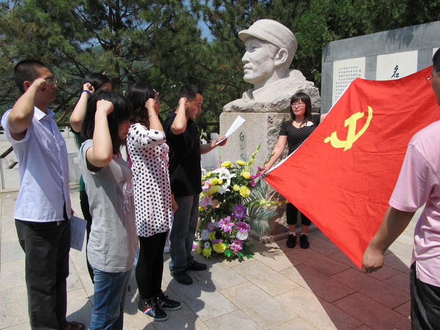 09博第二支部和08博第三支部一起前往密云,在白乙化烈士纪念碑前组织了一次独特而有意义的党员发展和转正会议。全体党员在纪念碑前庄严宣誓,共同缅怀先烈,畅想未来,进行了一次深刻的爱党和爱国教育。