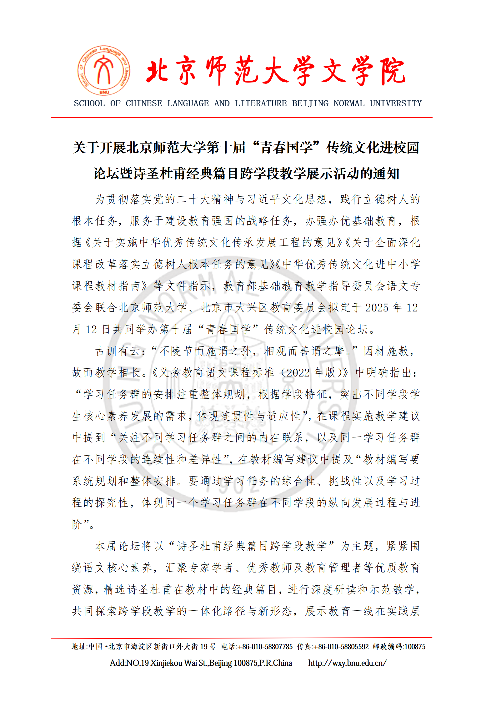 关于开展魔镜街拍 第十届“青春国学”传统文化进校园论坛暨诗圣杜甫经典篇目跨学段教学展示活动的通知