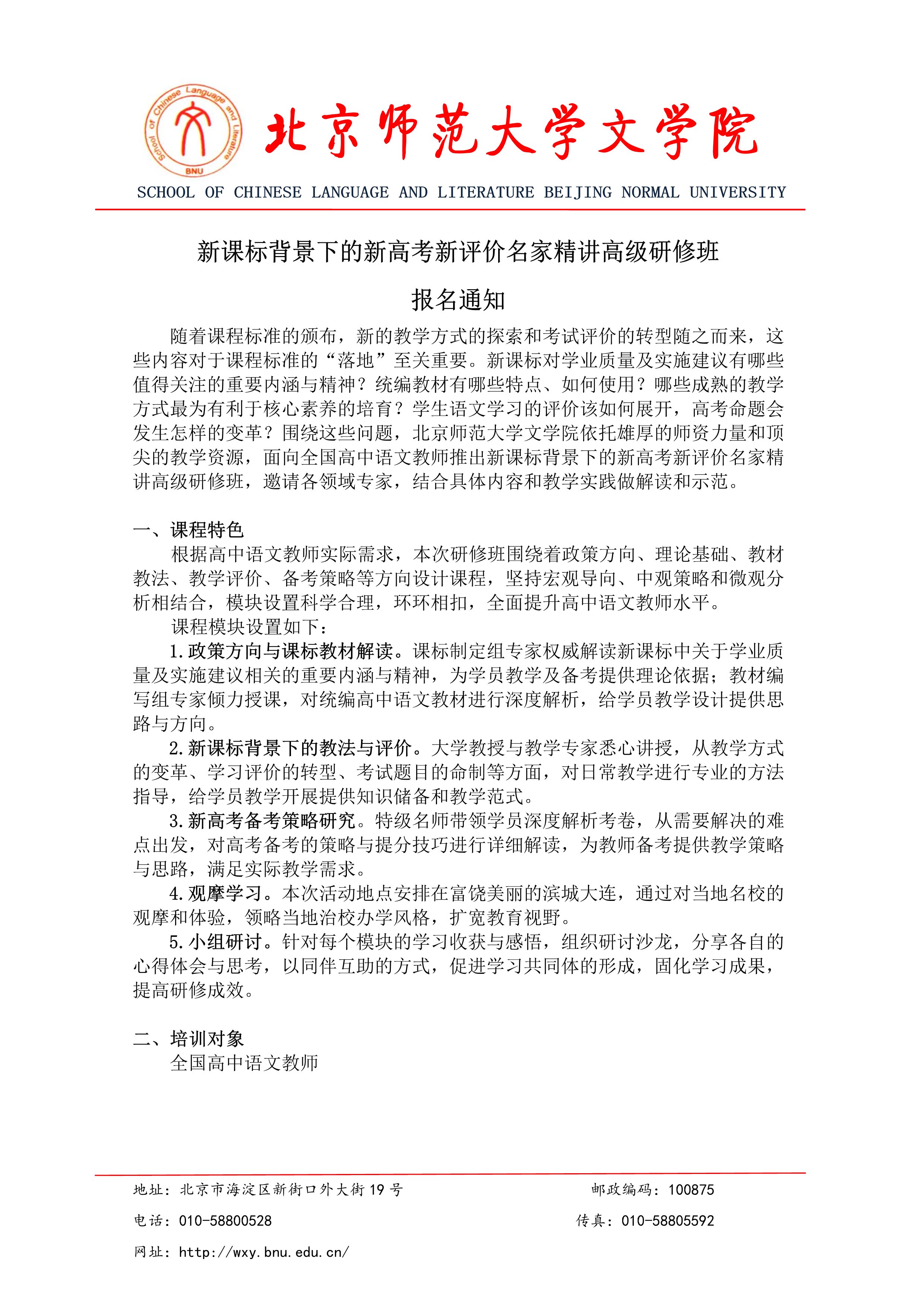 新课标背景下的新高考新评价名家精讲高级研修班报名通知