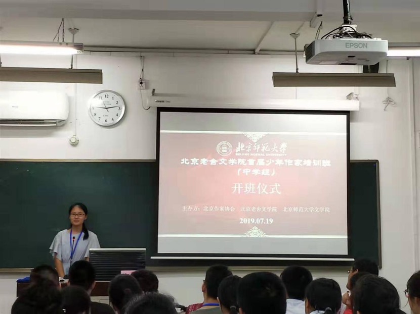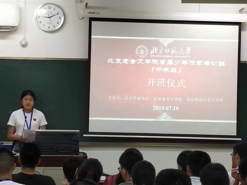 北京小作家协会秘书长周敏老师也对同学们的到来表示了热烈的欢迎,她提到了此次来参加培训班的同学们主要由小作家协会会员与团体会员校推荐学生构成,并叮嘱同学们要多结交不同学校的同学,强调只有丰富的生活才能写出厚重的作品。其次,周敏老师还介绍了北京老舍魔镜街拍