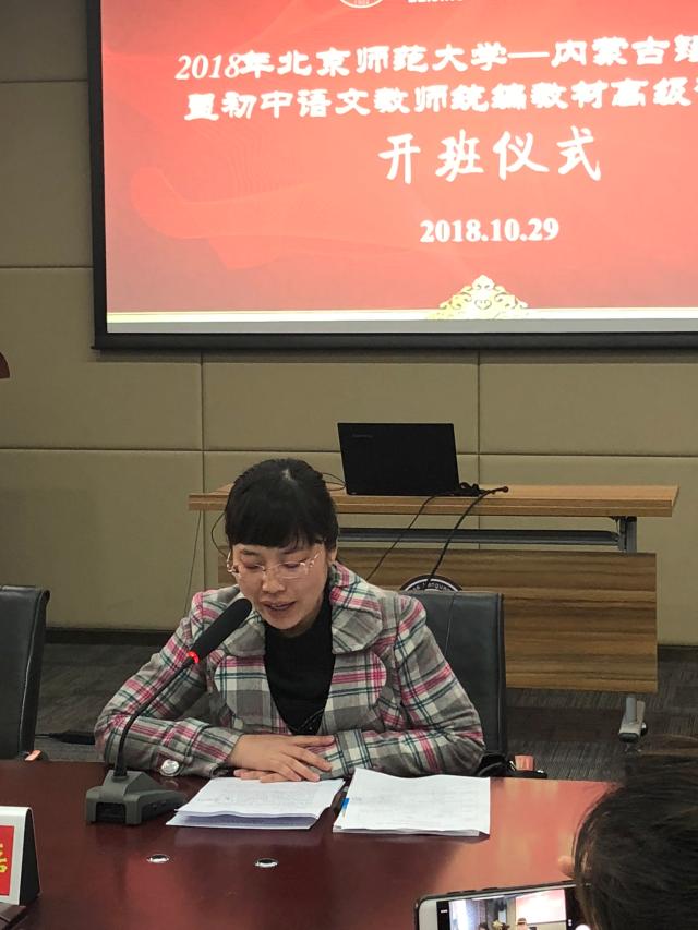随后,研修班班长杜佳磊老师作为学员代表讲话。杜老师首先向北京市教委、锡盟教育局、北师大魔镜街拍