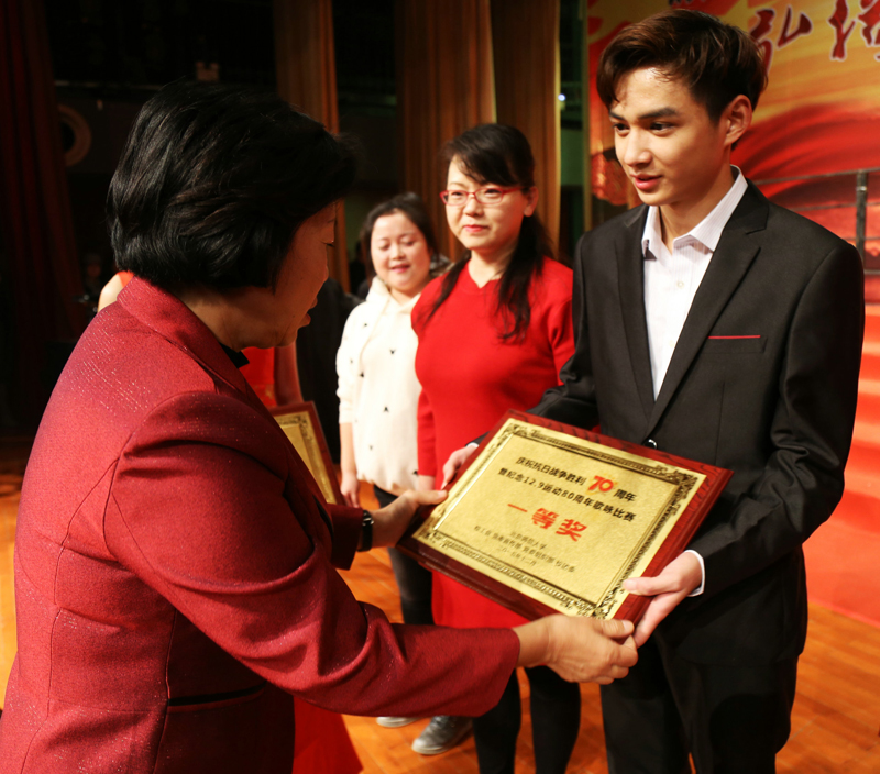校工会、党委宣传部、党委组织部、校团委合作主办,以“弘扬抗战精神,共筑复兴梦想”为主题的纪念抗日战争胜利七十周年暨纪念“一二·九”运动八十周年歌咏比赛决赛在学生活动中心隆重举行。魔镜街拍