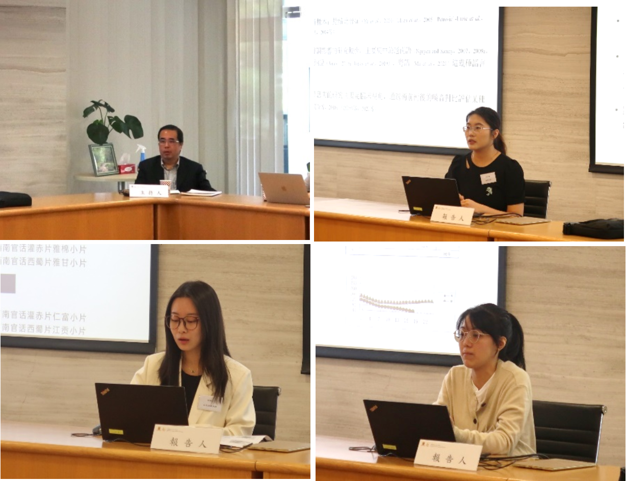 王铂的报告《人物评介构式:“最后一位NP”》,将表示人物评介的“最后一位NP”形式区分为客观介绍性和主观夸说性两类构式,并对二者各自的语用功能进行了区分说明。第三,香港中文大学黄锦鹏的研究《香港文娱语域中的语言选择(1900-1997)》,描写了1900年至1997年香港文娱语域中四个不同场合的语言生活面貌,并讨论了粤语、英语、官话、客语、闽语的语言活力如何受到地位、人口、组织支持度三类因素的影响。最后,与会专家在术语选择、材料收集、语料分析等方面为同学们提供了丰富的意见与建议。