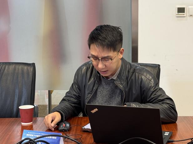 的王浩铭报告了《名词融合与汉语离合结构》,从伪名词融合的视角对汉语离合结构进行重新认识。随后,洪爽、金椿姬、孙银新老师分别对几位师生的发言进行了评议。