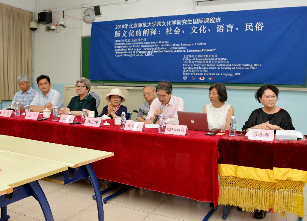 北师大民俗典籍文字研究中心主任李国英教授致辞。他强调两点:一是如何推进跨文化视野下的中国传统文化研究?二是如何通过跨文化研究推进学科建设和人才培养工作?跨文化学研究生国际课程班的建设,将基础研究、学科建设与研究生教育相结合,是一条可行途径,我们将继续走下去,希望把更多的研究生培养成人类优秀文明和和平社会建设的有用人才。