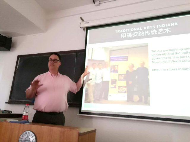 Jason Baird Jackson教授首先介绍了美国民俗学博物馆的民俗研究历史以及相关的民族志博物馆机构。在全面介绍了美国博物馆民俗研究中最相关的理论问题之后,Jackson重点介绍了北美正在进行的一些民族志博物馆项目,如互惠研究网络、印第安纳传统艺术、拼布索引、意识展厅、文化实验室、地方社区合作等。随后,他详细展示了在中国地区的博物馆合作项目,以及在广西所作的田野调查研究。