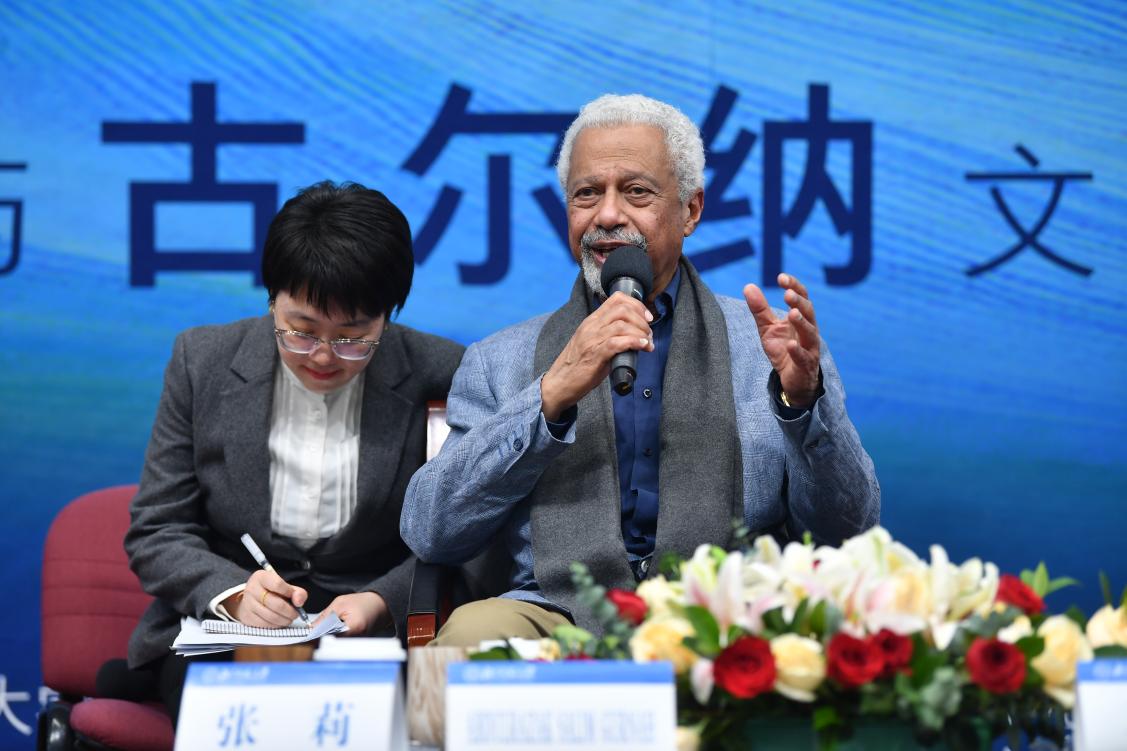 古尔纳在开场致辞中感谢马骏校长和莫言先生的热情欢迎,他十分赞同莫言对文学事业与文学力量的判断及阐发,也非常期待今天的对话,期待看到中国读者对自己作品的阅读反应。