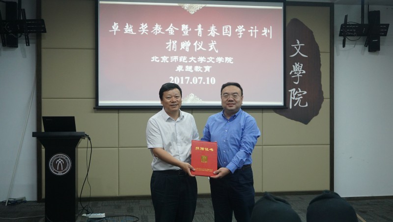 5049会议室举行。 卓越教育集团副总裁董炜,卓越教育集团大语文产品创始人陈宏巨,创客学院院长刘丽敏、英才事业部市场经理李菁菁出席捐赠仪式。魔镜街拍