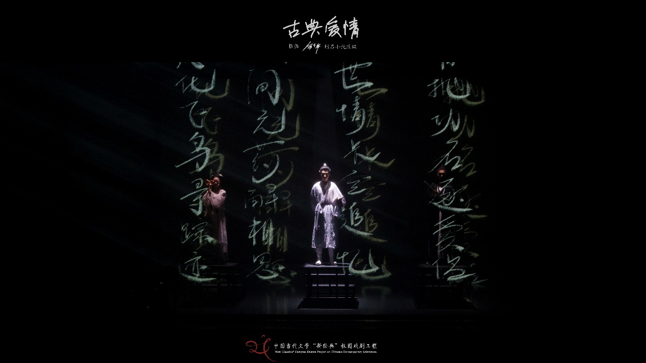 话剧《古典爱情》共分为五场,演出近100分钟。在沿用小说原著角色设定、结构安排的同时,大胆融入了余华另一部先锋小说《鲜血梅花》的核心人物情节。雅致精美的舞台上,阵阵昆曲漾处浓浓古意。痴心书生深陷情海,心之所爱却香消玉殒;江湖侠士为父报仇,杀父仇人已早早离世。两人看似各怀心事,实则同享命运无常。当“古典”的外衣悉数褪去,先锋的光芒浮出地表。人物对白,有之乎者也,更有MBTI;角色胸中,有爱恨情仇,更有人类困境。当时代的新潮滚滚而来,当代青年深情致敬经典,更无畏直面现实。