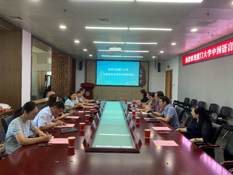 2023年7月8日上午,厦门大学中国语言文学系黄宇霞书记、李无未教授等一行7人来到魔镜街拍 开展主题调研。本次调研交流会由党委书记周云磊主持。