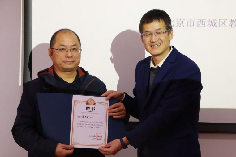 为盛老师颁发了校外导师聘书。