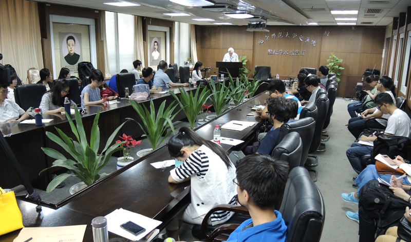 顾彬先生旁征博引,侃侃而谈,妙语连珠,不时引起阵阵笑声。他的谈话也像在“做哲学”,他没有告诉听众翻译的规则和具体方法,而是呈现他对翻译的种种思考,从而引发听众对翻译的关注和兴趣。讲座结束了,而我们对翻译问题的探索还在继续。(韩潇怡撰稿)