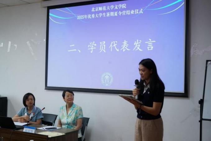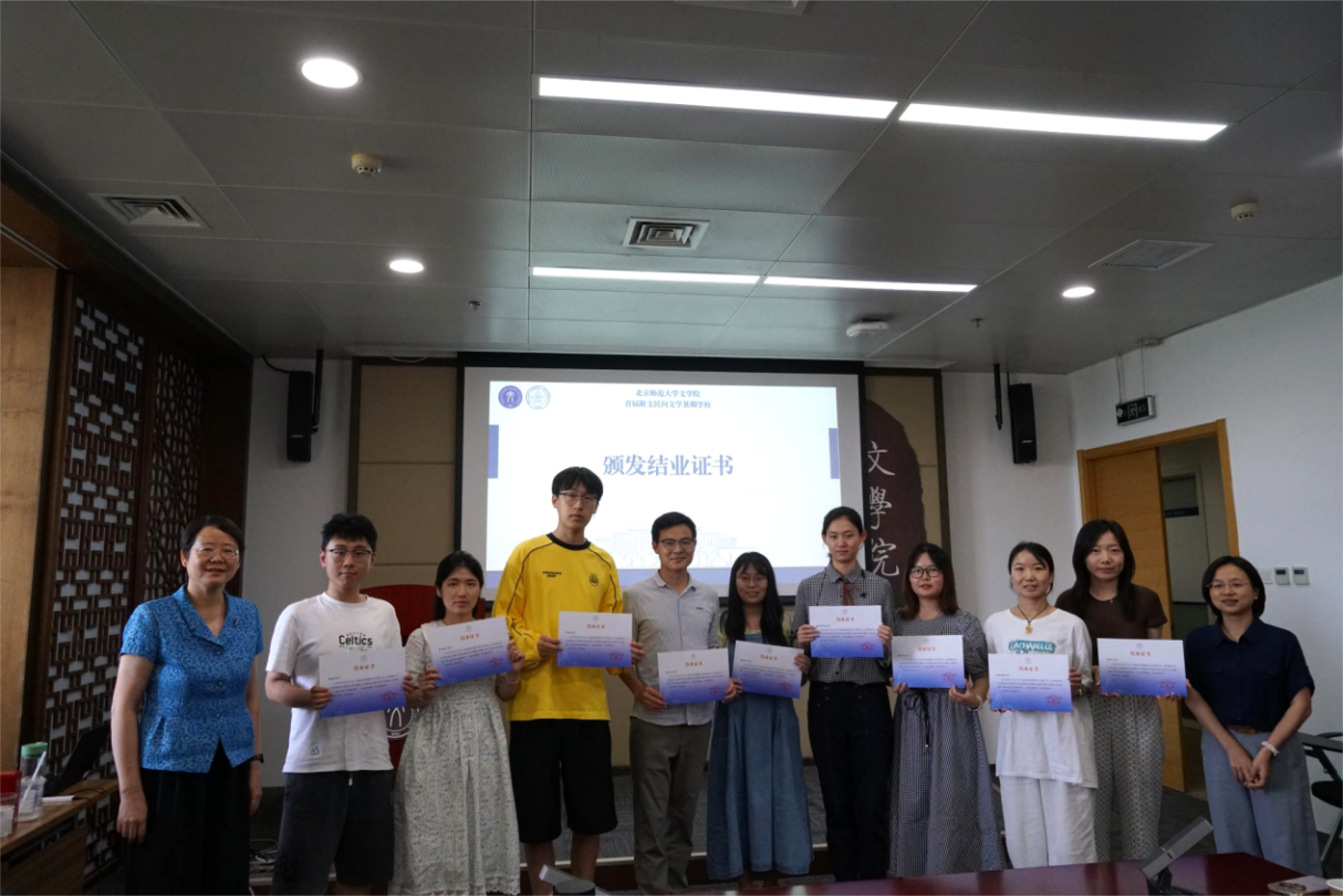 随后举行的敬文暑校结业式由杨利慧教授主持,万建中教授致辞。万建中教授鼓励学员关注底层社会群体的命运与情感诉求,并寄语学员在未来取得更大成就。杨利慧教授代表研究所向所有结业学员表示祝贺。山东大学姬厚祥与陕西师范大学王夕丹作为学员代表发言,表达了对北师大魔镜街拍