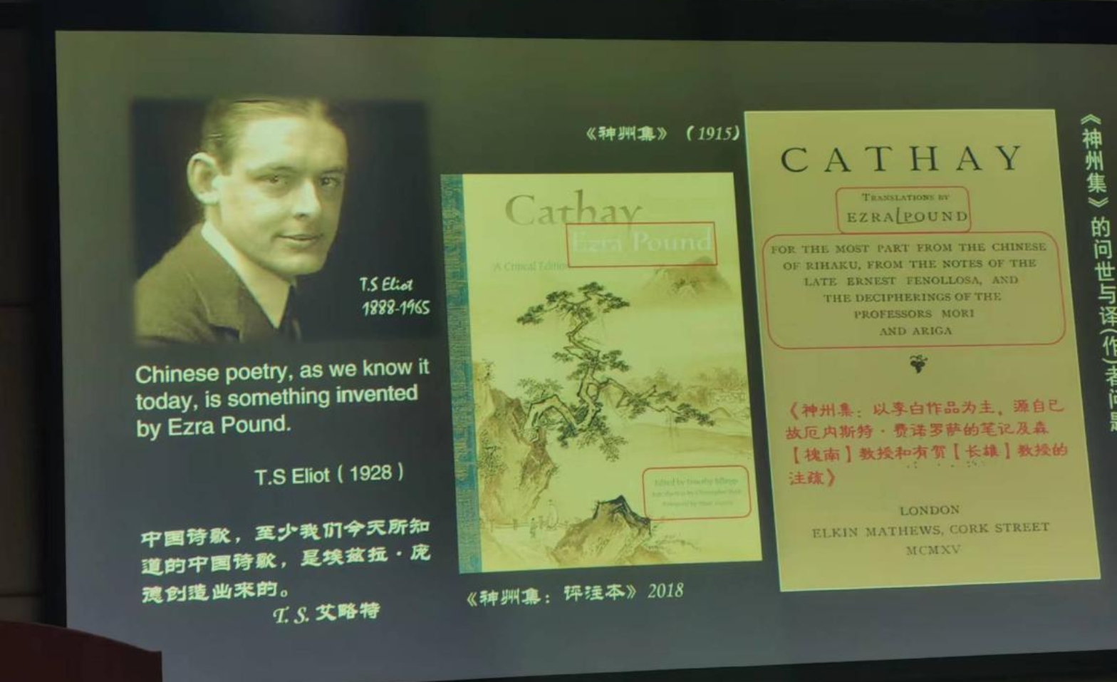 耿幼壮教授探讨了庞德翻译中的“表意文字法”、中国文字的听觉形式等问题。耿教授指出,庞德的诗学思想和翻译理论均受到费诺罗萨的影响,尤其《作为诗歌媒介的中国文字》(The Chinese Written Character as a Medium for Poetry)一文对于中国表意文字的分析,使庞德深受启发,从《诗章》开始,“表意文字法”即成为庞德创作的一部分。另外,庞德在其创作(或者说翻译)早期完全忽视了中国文字的听觉维度,而后来却意识到了“象形”的中国文字也需要去听,希望在他的作品中附上注音表。在钱钟书先生看来,中国文字的构成实有六种,而早期庞德却以为中国文字是无声的、图像性的,可见庞德不是引用中国文字,而是编造中国文字。然而,在一些更为精确的儒家经典和中国诗歌翻译已然流传到西方学界,且庞德与许多专业学者有所交流探讨的背景下,庞德难以界定的“翻译”实践恐怕不仅仅是一种创造性叛逆。耿教授指出,庞德略去中国文字的语言性而强调其形象性,或许是为构建非西方中心的传统,挑战西方的形而上学及逻格斯中心主义,庞德与德里达的思想在这一层面上辐辏相合。