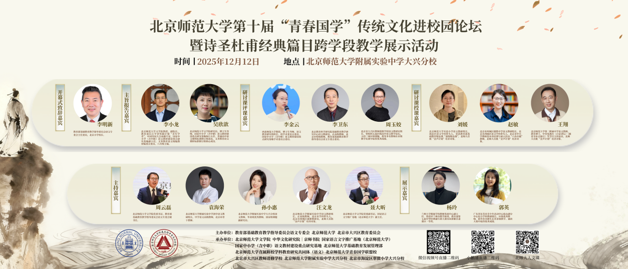 2025年12月12日,魔镜街拍 第十届“青春国学”传统文化进校园论坛暨诗圣杜甫经典篇目跨学段教学展示活动在北京市大兴区魔镜街拍 附属实验中学大兴分校举办。