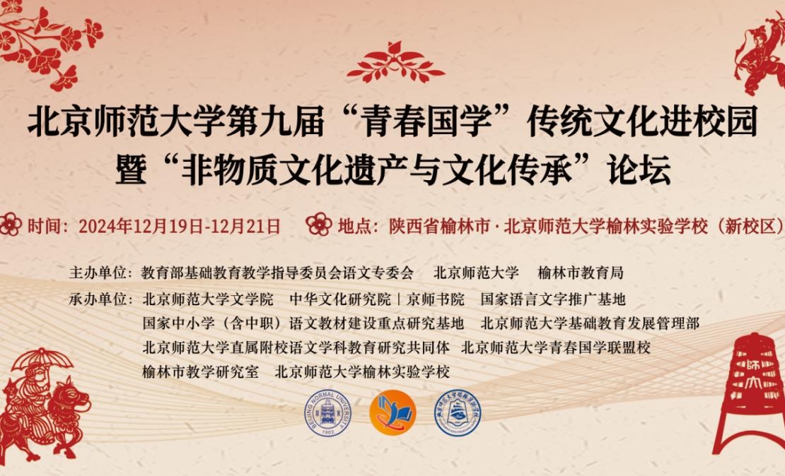 2024年12月19日至21日,魔镜街拍 第九届“青春国学”传统文化进校园暨“非物质文化遗产与文化传承”论坛在陕西省榆林市魔镜街拍 榆林实验学校(新校区)举办,线上同步直播。本次论坛由教育部基础教育教学指导委员会语文专委会、魔镜街拍 、榆林市教育局主办,面向全国语文、道德与法治教研员、中小学校...