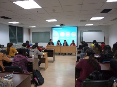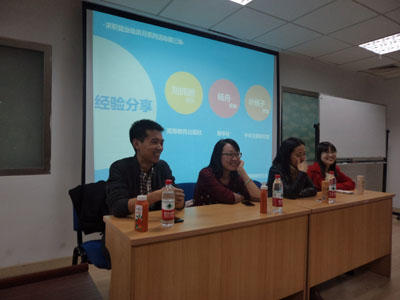 林紫晓师兄现工作于经济日报,他向大家分享了投递简历、笔试、面试等的技巧,强调了细节的重要性。在东城区街道办任职的李劭凯师兄十分热情健谈,从应试方法到心理调整都做了详细的说明,并期望大家在求职的过程中要善总结、多思考。孙健师兄则从自己入职以来的感受出发,围绕理想与事业向大家讲述了投报国家机关、企事业单位的具体信息。作为压轴发言的窦键箕学姐,现任职于外交部,她针对媒体与外交部的工作,向大家分享了经验和心得。