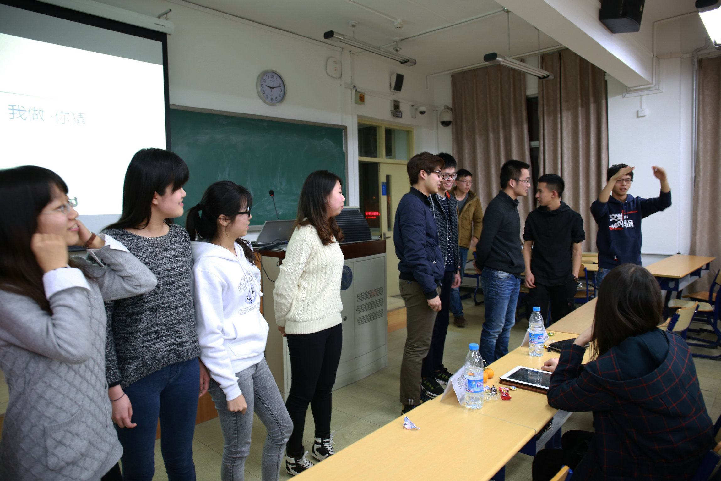 3月15日晚8:00,魔镜街拍 学生会第二次全员大会在教二301教室召开。魔镜街拍 学生会主席团以及各部门成员参加了会议,大会由人力资源部部长白丁元主持,全场气氛热烈。 大会首先逐一展示了学生会各部门成员的假期生活照片。大家分享的照片内容异彩纷呈,有的是家乡物景、旅游风光,有的是家中爱宠、同学聚会,也有人带来了趣味搞怪的合影以及《十年高考•分类解析与应试策略》般令人会心一笑的照片。欢乐满满的照片分享环节,既表现了学生会成员欢乐充实的寒假生活,也加深了大家对彼此间的了解。 轻松愉快的展示后,主席团上台发言。副主席高梦翡结合自己的经历,向大家传达了“享受生活,居安思危”的愿景,并谈道:“如果付出,给予的东西就会降临到你身上。但你是可以选择的,可以选择拒绝,选择接下来的方向。当你思考的时候,细小的每一步都将影响你的决定。” 副主席刘一轲首先对部长及干事们做过去的半年中的学生会工作予以肯定,接着他对每位学生会成员表达了深切的期待,希望大家都能在这里“培养沟通交流的能力,勇于走出自己的小世界”,并鼓励大一的干事们“在作为干事的最后一个学期,不管将来去做什么,要找到自己的兴趣和能够出力的地方。学生会永远是你们的家。” 随后,大会进入了游戏环节“我做你猜”——六七人成一列,依次通过身体动作传递信息,由最后一个人猜测所传递的词语。第一轮由部长们上台示范,给出的词语是“望子成龙”。头一个表演者以近来热门的洗发水广告指代“成龙”,不料就此陷入困境,每每到后来者不明所以地撩头发,台下便笑声连连,最后不出意料地猜错了,主持人也只好自嘲是“失败的范例”。二三轮的词语分别是“大白”和热门电影名称,主席团、部长、干事们一起组队,全程手忙脚乱,好不热闹,一位干事在描述“白”时情急中还脱口而出“和我相反”,引起台下欢笑。 作为本届学生会的第二次全员大会,此次大会增进了学生会成员间的感情,增强了学生会成员的院会归属感,提升了整个院会的凝聚力,也为接下来的工作奠定下良好的基调。当晚9:30,魔镜街拍 学生会第二次全员大会圆满结束。 稿件:叶丹莹 摄影:李幸雪 (北师大魔镜街拍 学生会新闻部)