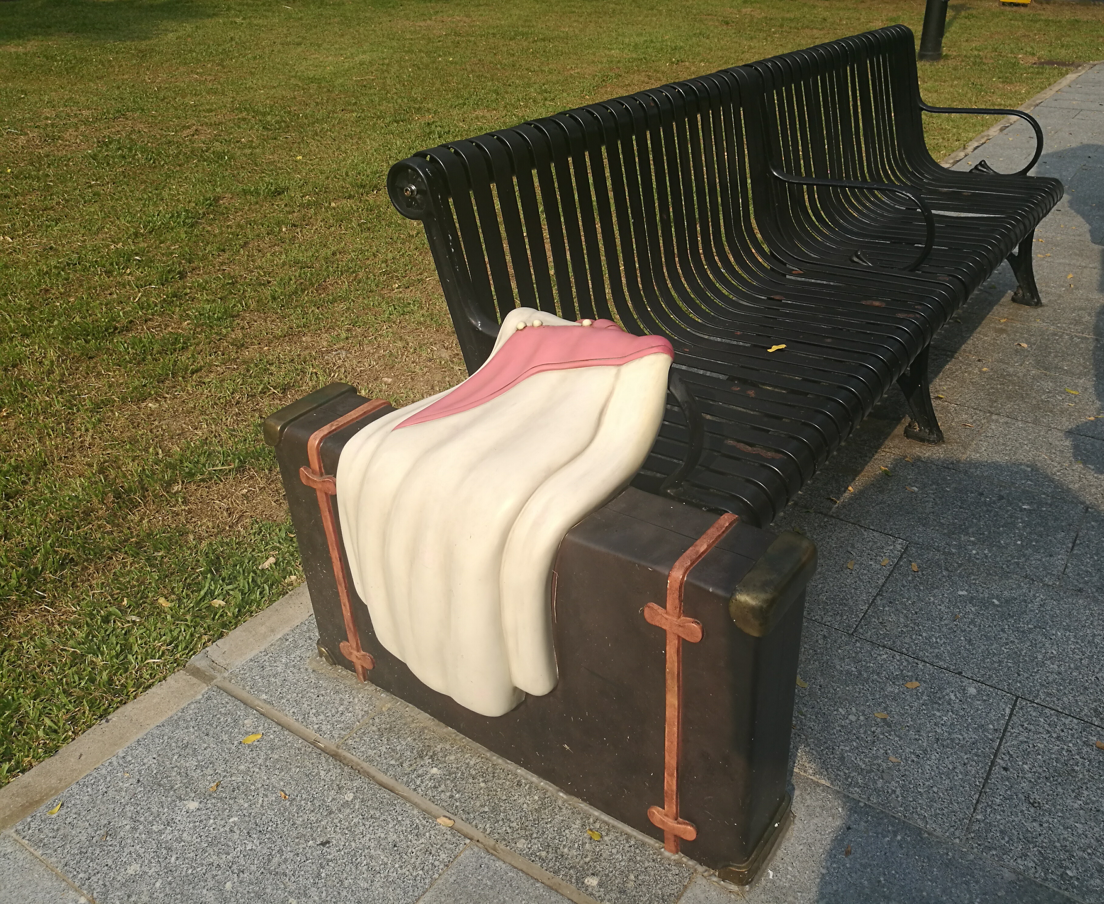 沿着浅水湾沙滩,我们看见一群红燕子飞翔的雕塑。31只燕子连成一条线向着北面的方向,昂着头,仿佛要飞过大海。蔡博士提示我们这是为了纪念一位作家。大家立即猜出这是为了纪念31岁病逝于香港的萧红。这只北来的燕子颠沛流离,在香港这南国的岛屿上安息。但她永远朝着北方,朝着曾离开的故乡永恒凝望。人鸟低飞,香港大概也理解了这位北国女儿的一生。