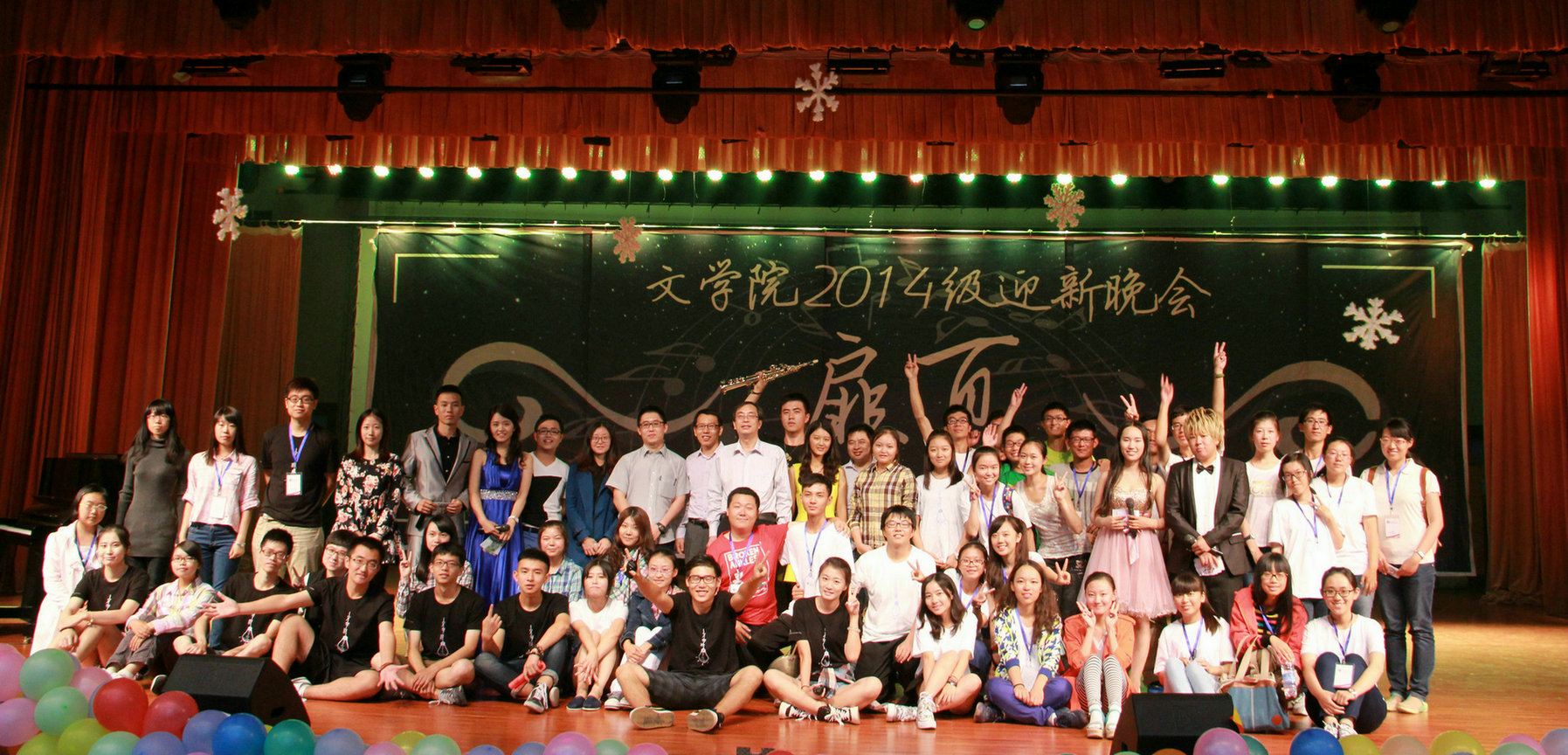 学生会的部长们就以舞蹈“小苹果”表达了学长学姐对新生的热情欢迎,博得欢呼不断。韩国留学生金权熙等同学带来歌曲《甜蜜蜜》,以歌舞表达留学生们的祝福。“文院好声音”常宇峰以一首《美丽世界的孤儿》阐述了自己对大学生活的感悟。典雅优美的民乐合奏之后,大三学生泰然的一曲《痴心绝对》将古韵与流行完美结合,而接下来晚会主持人李一男的一曲机械舞《Tonight》则再一次将晚会推向高潮。