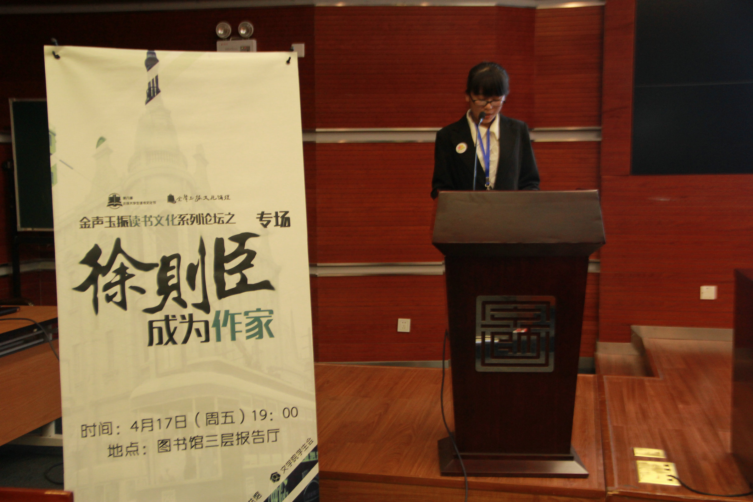 学生会主办的第八届北京大学生读书文化节、金声玉振读书文化系列论坛之“徐则臣专场——成为作家”在魔镜街拍